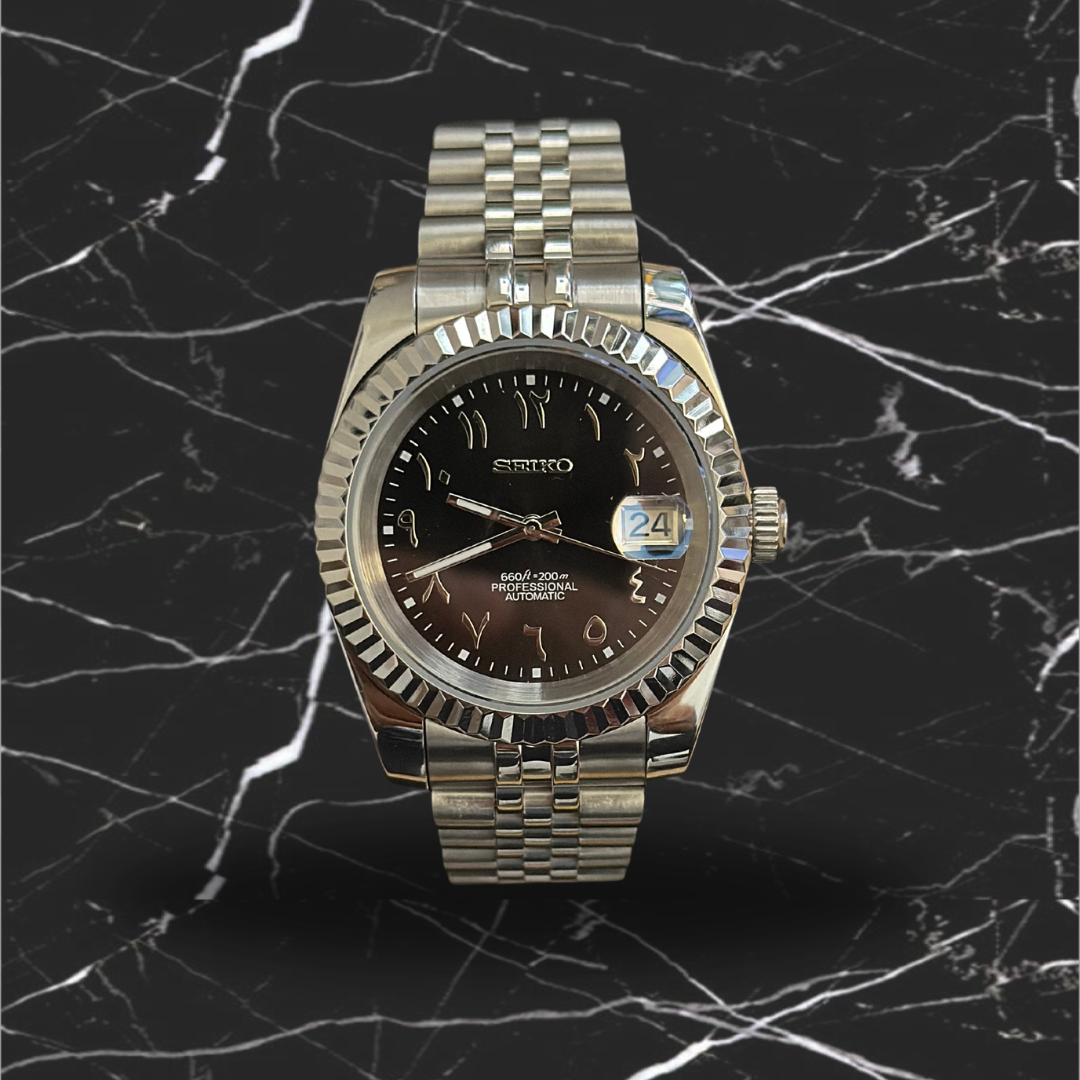 The Seiko Mod Datejust seamlessly reimagines timeless elegance, merging classic design with skilled craftsmanship. Powered by the dependable Seiko NH35 automatic movement, this watch comes in either 36mm or 39mm sizes, ensuring a custom fit for any wrist.