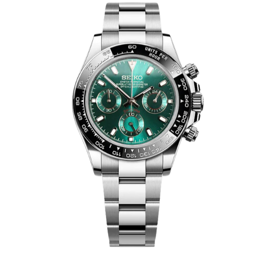 Drawing inspiration from the legendary Rolex Daytona, the Seiko Mod Daytona merges timeless design with modern innovation. This 40mm chronograph is powered by the Seiko VK63 hybrid movement, skillfully blending the consistent accuracy of quartz with the dynamic appeal of automatic functionality.