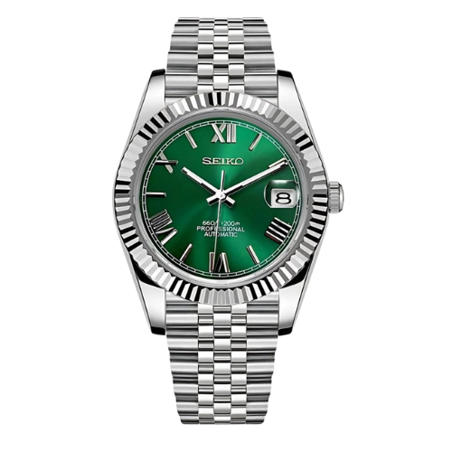 The Seiko Mod Datejust seamlessly reimagines timeless elegance, merging classic design with skilled craftsmanship. Powered by the dependable Seiko NH35 automatic movement, this watch comes in either 36mm or 39mm sizes, ensuring a custom fit for any wrist.